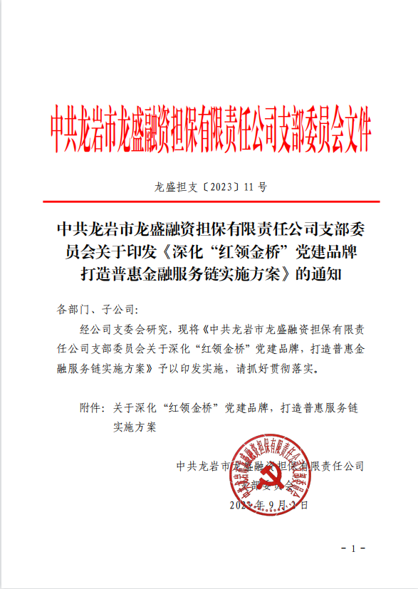 近年來,龍盛擔(dān)保公司黨支部以習(xí)近平新時代中國特色社會主義思想為指導(dǎo),以“四抓手”持續(xù)深化“紅領(lǐng)金橋”黨建品牌建設(shè),助推黨建與業(yè)務(wù)相融并促,匯聚起服務(wù)實體經(jīng)濟發(fā)展的強大合力。公司黨支部先后被集團黨委、市國資委黨委評為“先進基層黨組織”,公司連續(xù)兩年被市委、市政府評為“服務(wù)實體經(jīng)濟十佳金融機構(gòu)”,今年獲省屬企業(yè)投資入股5000萬元,成功引入國家融資擔(dān)?;鹇涞佚垘r。