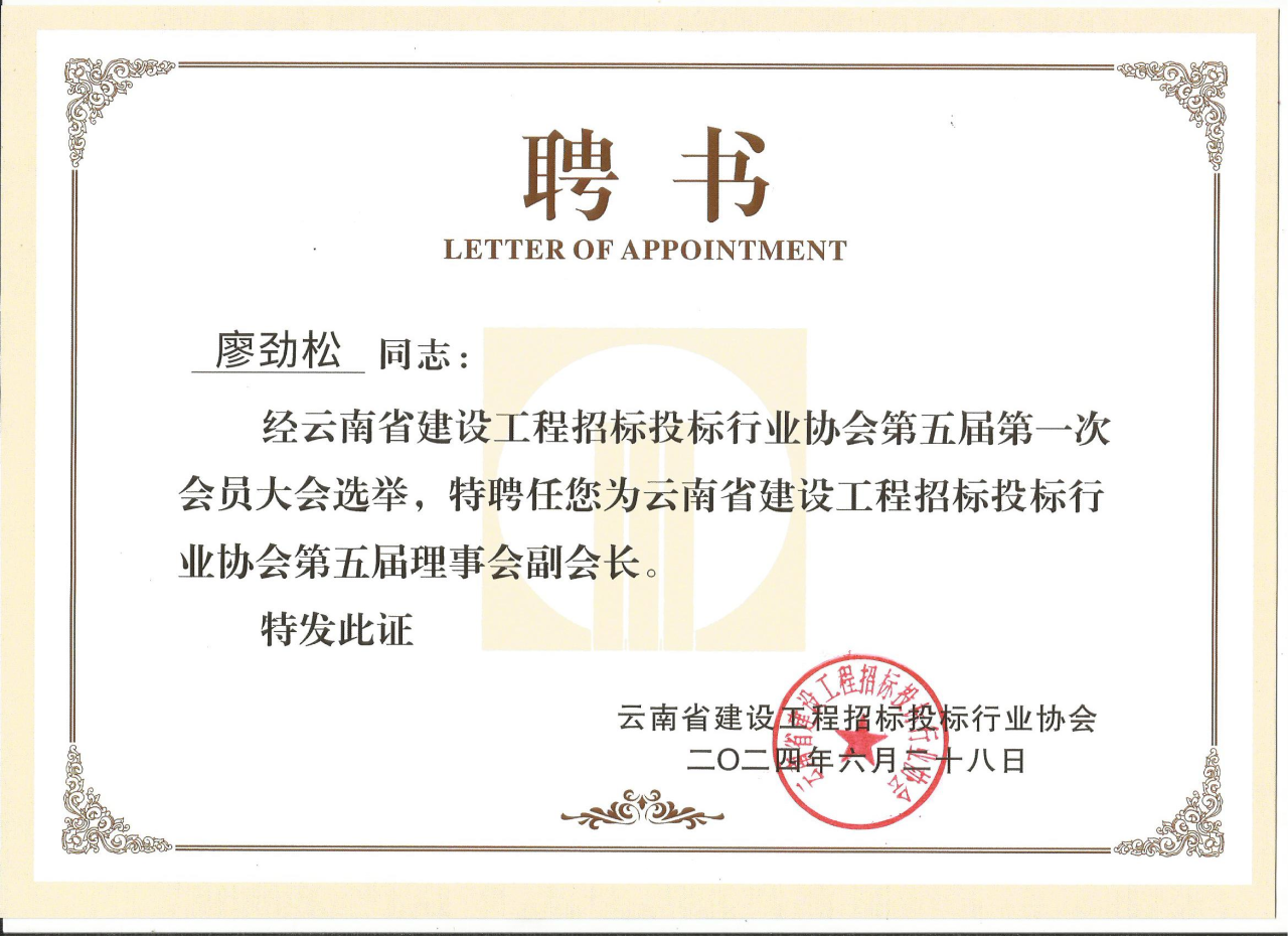 云南省建設工程招標投標行業(yè)協(xié)會第五屆第一次會員大會在昆明圓滿落幕,我公司再次被推選為云南省建設工程招標投標行業(yè)協(xié)會副會長單位,公司副董事長廖勁松當選第五屆理事會副會長,并榮獲協(xié)會頒發(fā)的“2023年度愛心企業(yè)”、“2023年度優(yōu)秀會員單位”獎狀。