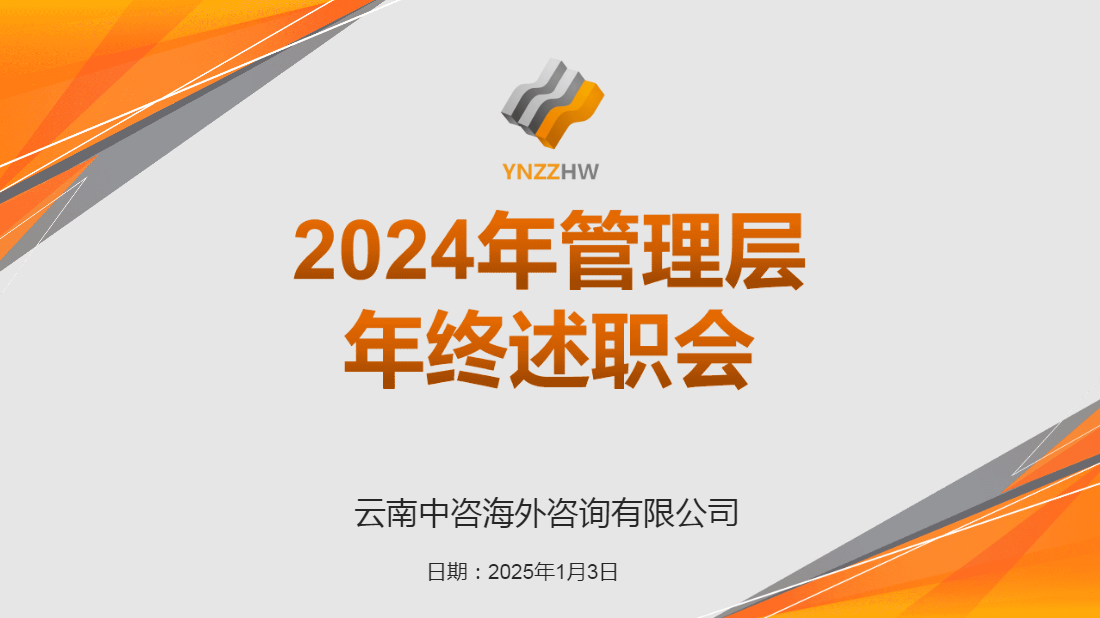 2025年1月3日下午,云南中咨海外咨詢有限公司在公司順利召開“2024年管理層年終述職會”。會議主要內(nèi)容為總結(jié)2024年公司工作開展情況,回顧全體員工的辛勤付出和收獲,并展望2025年公司發(fā)展藍(lán)圖。