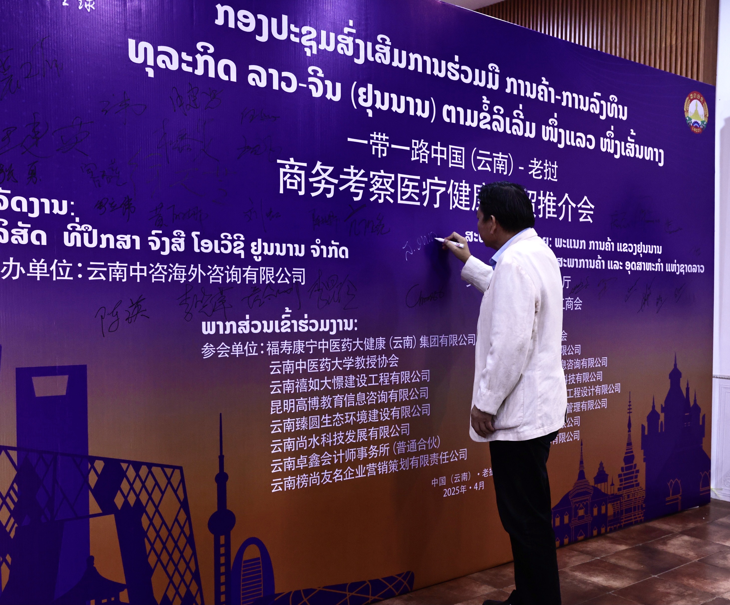 為響應(yīng)《云南省“3815”戰(zhàn)略規(guī)劃》,我公司結(jié)合自身資源與優(yōu)勢(shì),于2025年4月20日—26日期間舉辦了“一帶一路中國(guó)(云南)—老撾醫(yī)療健康商務(wù)考察經(jīng)貿(mào)推介會(huì)”。我公司作為主辦方,得到云南省啇務(wù)廳和老撾國(guó)家工商會(huì)的支持。