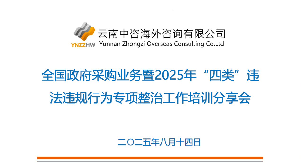 為深入積極響應(yīng)財(cái)政部、公安部、市場(chǎng)監(jiān)管總局關(guān)于開(kāi)展政府采購(gòu)領(lǐng)域"四類"違法違規(guī)行為專項(xiàng)整治的工作要求,進(jìn)一步提升采購(gòu)代理服務(wù)質(zhì)量,云南中咨海外于2025年7月選派質(zhì)量管理團(tuán)隊(duì)參加"全國(guó)政府采購(gòu)業(yè)務(wù)暨'四類'違法違規(guī)行為專項(xiàng)整治工作解讀高級(jí)研修班",并于8月15日成功舉辦專題內(nèi)部培訓(xùn)會(huì),將先進(jìn)經(jīng)驗(yàn)系統(tǒng)融入業(yè)務(wù)流程,推動(dòng)采購(gòu)代理服務(wù)再升級(jí)。