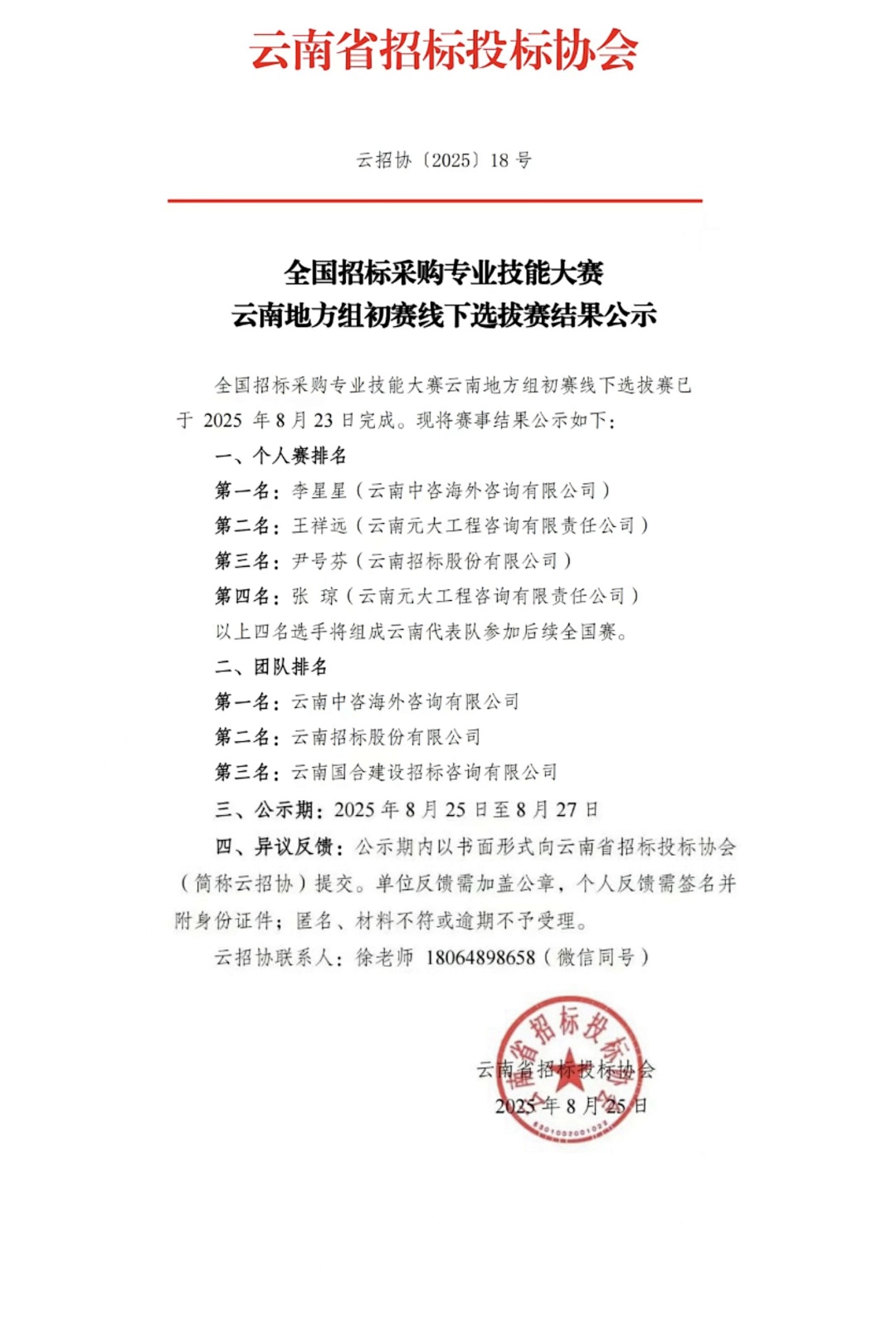 喜報(bào)?? 全國招標(biāo)采購專業(yè)技能大賽云南地方組初賽結(jié)果出爐,我司團(tuán)隊(duì)賽第一 + 個(gè)人賽第一 ,雙冠加冕!